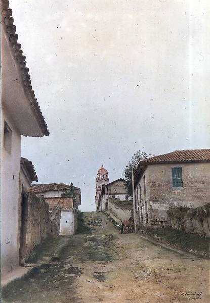 Yolanda Obando, “Dorfstrasse”, handkolorierte Fotografie